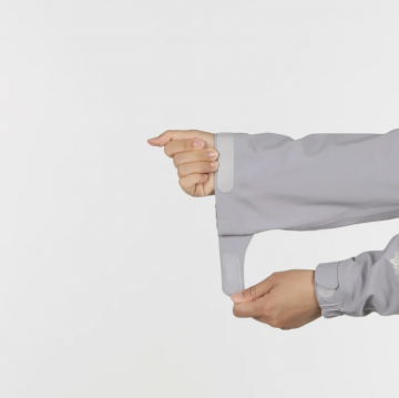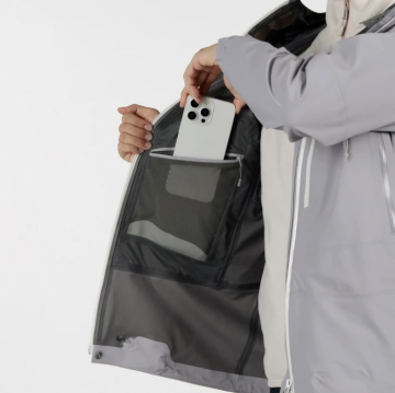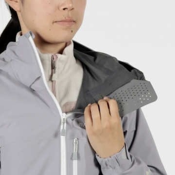 輕巧SUPER DRY-TEC®女裝攀山外套。使用防水透氣SUPER DRY-TEC®三夾布及Anti-Glisse雪地抗滑布料所製。彈性SUPER DRY-TEC®配合柔韌的40D尼龍面布,靈活性更強;且僅重441g。衣領兩側設透氣坑道,可防水蒸氣凝結於雪鏡。設靈活式三向調校頭罩。全立體式剪裁配合立體肩膀及手肘設計,動作更靈活。後背加長2cm增大禦寒範圍。腋下設透氣拉鍊開口。全衣採用抗水拉鍊。
