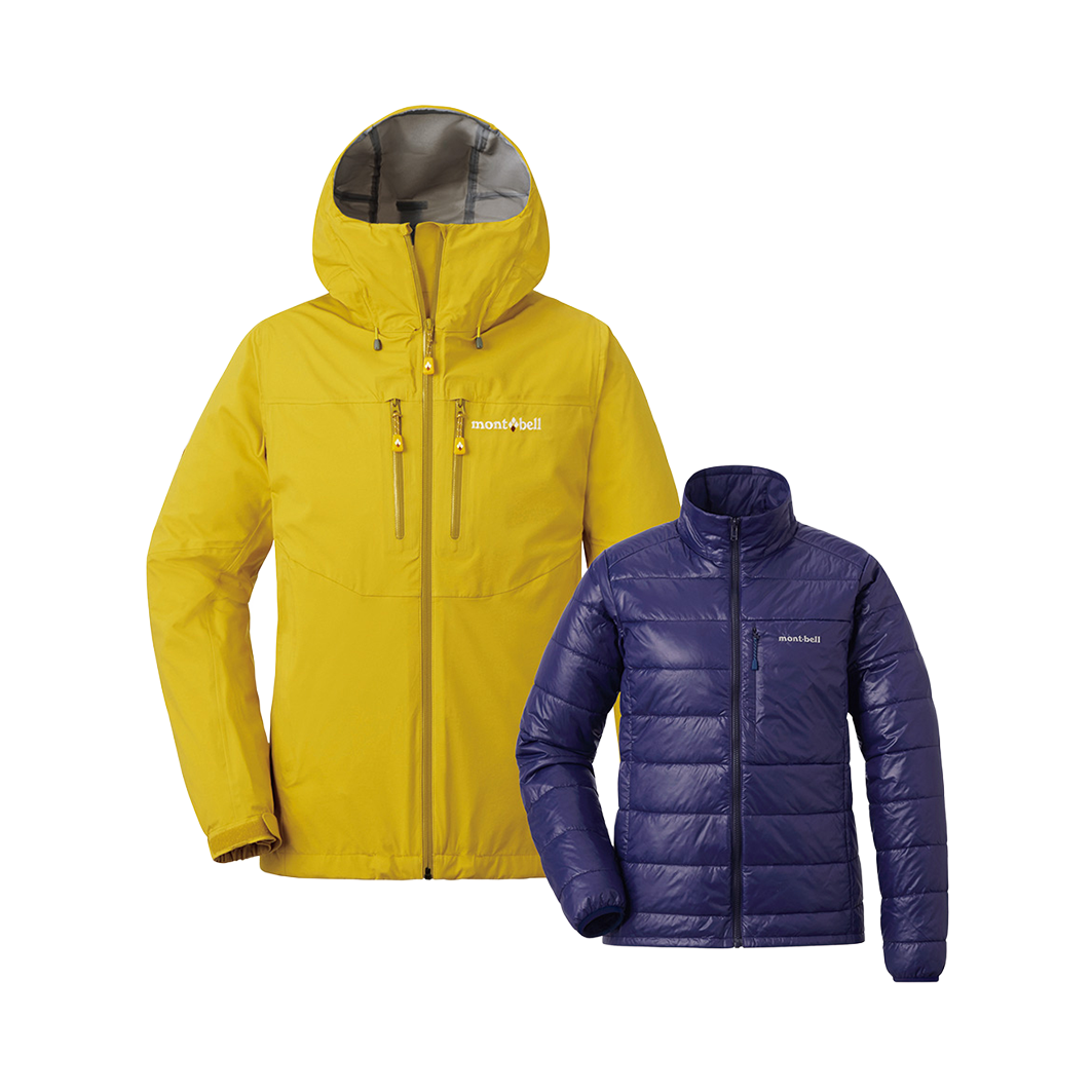 套裡式羽絨外套,外層為DRY-TEC防水外套,可分開穿著。