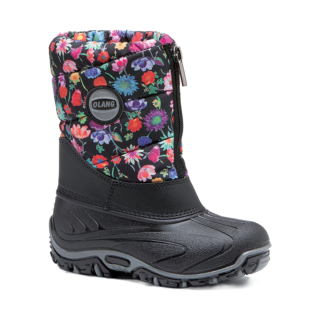 兒童保暖雪地靴。鞋底為高抓地的TR 粗粒式膠粒。正面設拉鍊開口,易於穿脫。