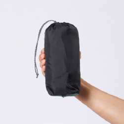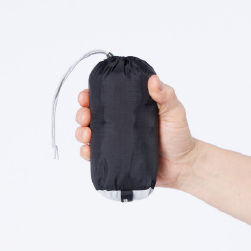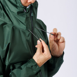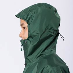 功能全面,設有帶帽簷的頭罩及插手袋, 並可將外套折疊收納至左側口袋內