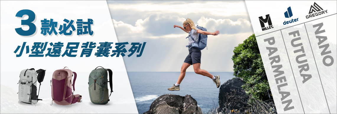 今季3款主打小型背囊,各具不同設計特色,滿足你輕鬆郊遊、透氣舒適、挑戰山野的不同需要。