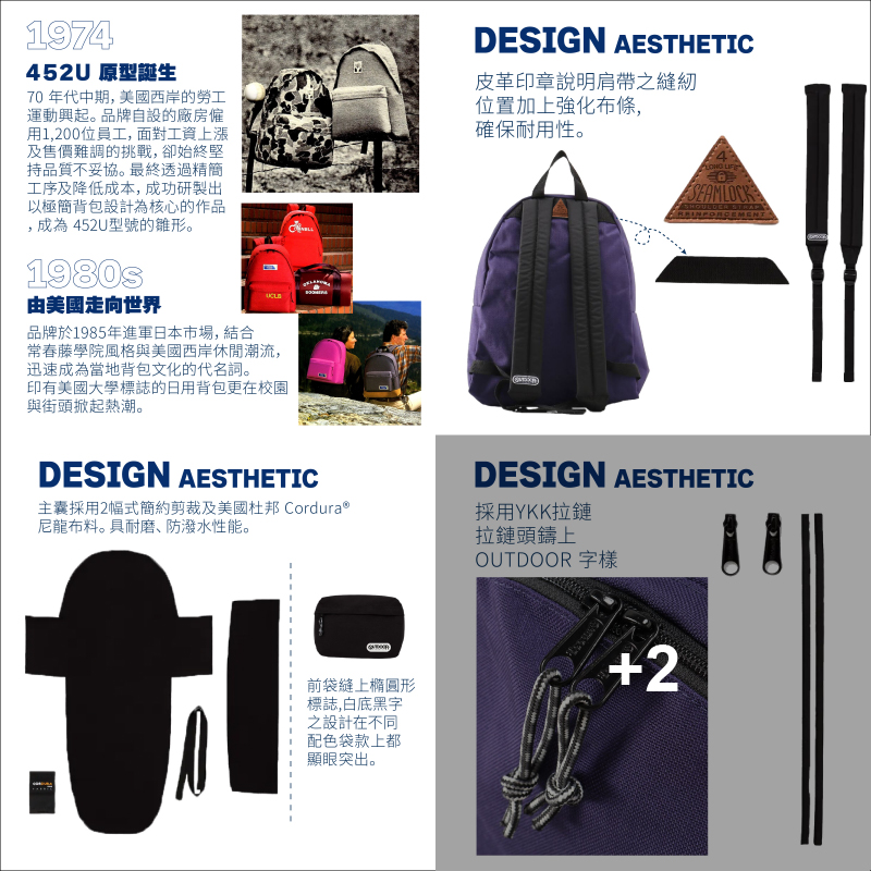 當中,452U背囊更是不少人由少年時代開始的出行伙伴。兩幅式簡約剪裁,多種色彩選擇,讓日常變得隨心隨性,簡單自在。