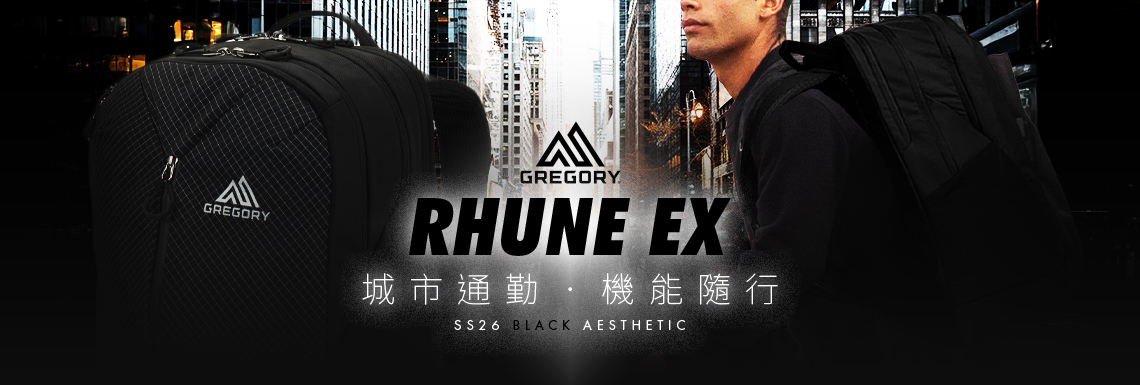 GREGORY【RHUNE背囊系列】今季注入4款特色暗黑布料,創製出獨具都會美學,兼具通勤機能的RHUNE EX 系列。