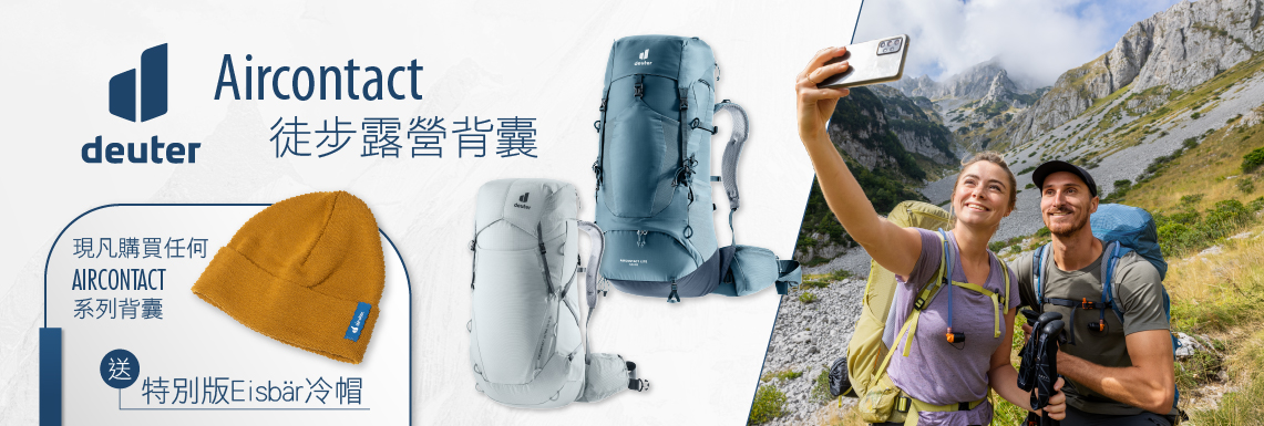 現凡於The Overlander購買任何一款 Deuter Aircontact 系列背囊,更可獲贈特別版Eisbär冷帽。