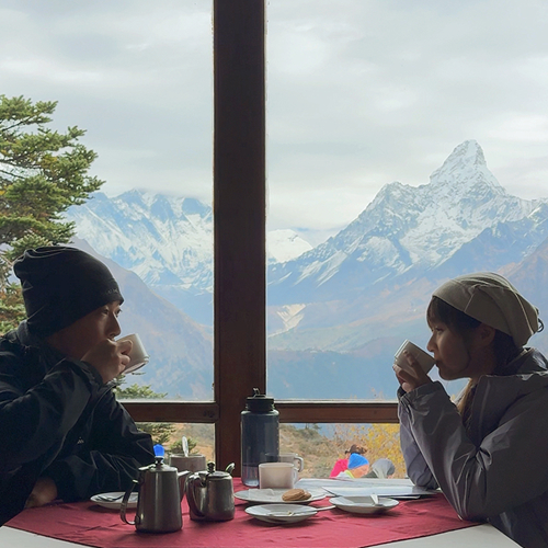 適應日,沿著陡坡緩緩走到EVEREST VIEW HOTEL,這邊可以喝着咖啡欣賞努子峰與洛子峰的龐然山體,真是十分CHILL~