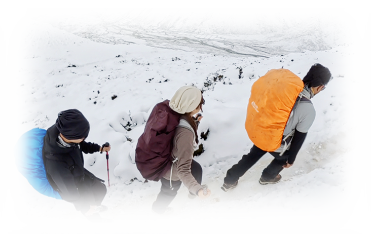 | 這條路線穿梭於多變的地形之間,從森林、峽谷、山脈到冰川,沿途需跨越溪流、適應各類自然地貌。海拔高度是全程的重要挑戰,必須謹慎面對高海拔對身體的影響。建議擁有良好的體能基礎,並在循序漸進的上升過程中,給予身體足夠的時間調整血氧濃度,適應高海拔環境! |