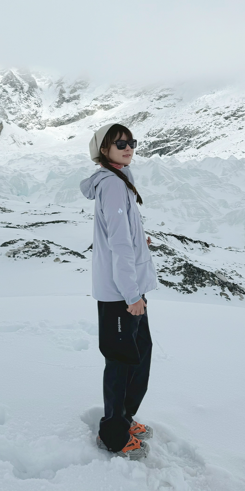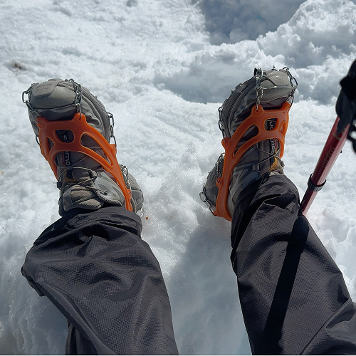 在前往GOKYO LAKE或翻越Cho La Pass等路段,常會遇到結冰路面或冰川遺跡。此時,為登山鞋綁上輕型雪爪,能提供可靠的冰面抓地力,大幅降低滑倒風險。