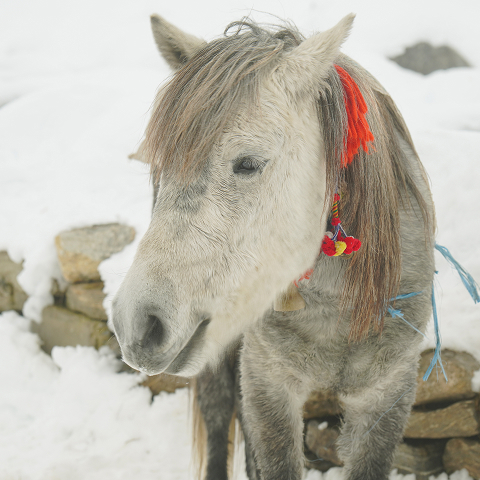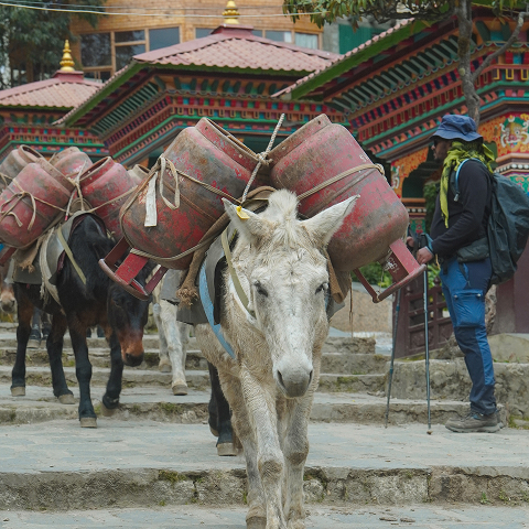 除了令人屏息的雪山景觀,沿路還會經常遇到馱著物資的驢、馬、氂牛。牠們的鈴鐺聲迴盪在山谷間,也成為路線上的獨特風景。(也有很多可愛的小狗)