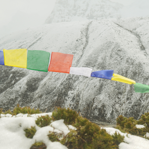 五色風馬旗懸掛在山口、橋頭與寺廟旁,藍白紅綠黃分別象徵天空、雲朵、火焰、河流與大地。每一次飄揚,都被認為是誦讀一遍經文,將祝福隨風送往聖山。了解文化意義,每次看到旗幟飄揚都會額外感動。