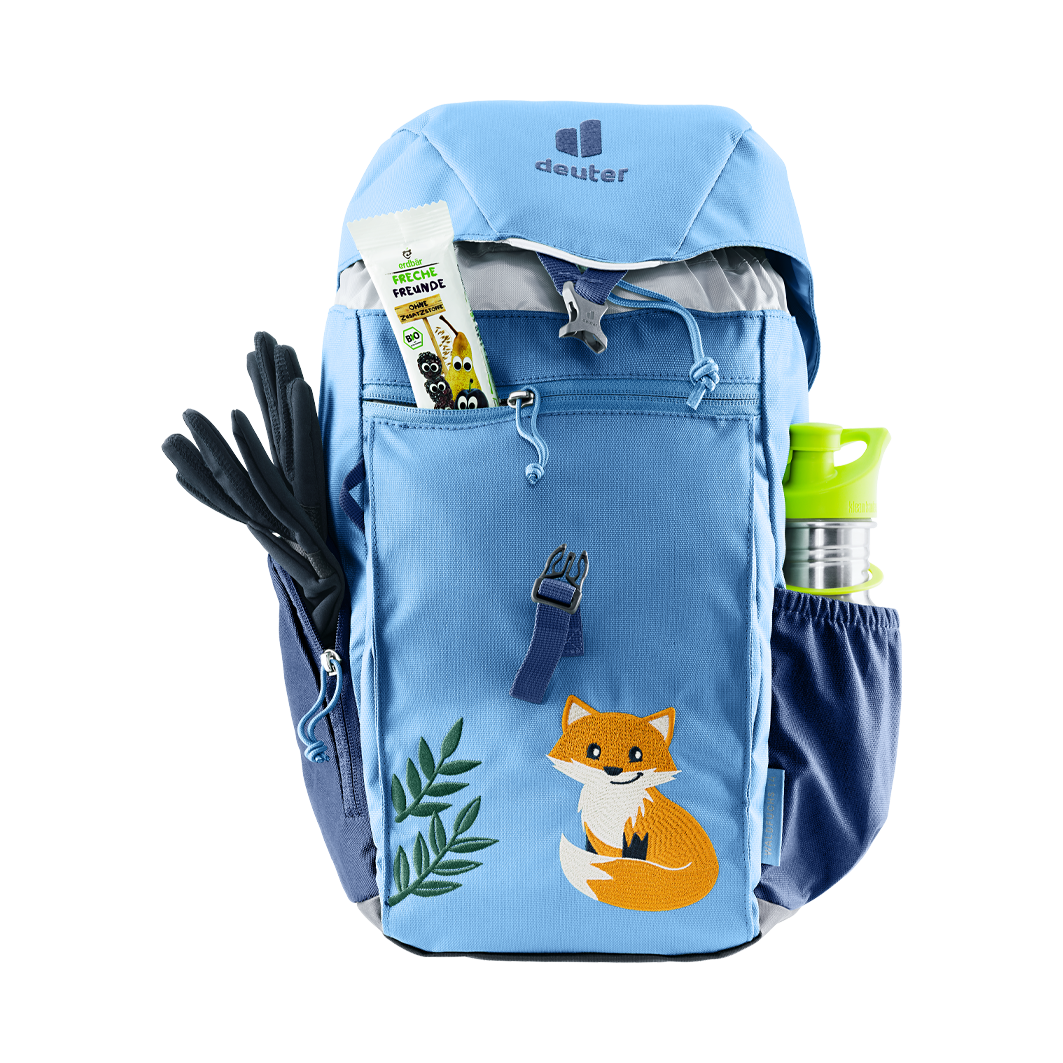 頂蓋式設計環保童裝背囊,正面印有可愛狐狸圖案。設有內格,方便分類濕濡物品。