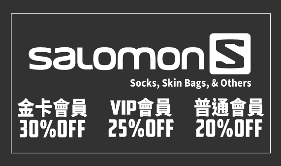 - Salomon and Outdoor Research Special 只適用於持有有效電子會員証,臨時 VIP Pass 並不適用。