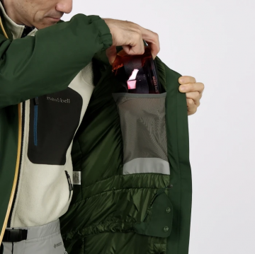 高性能冬日雪地滑雪外套。選用輕薄柔軟之GORE-TEX®Windstopper防風透氣布料,既可阻擋寒風滲入衣內,而濕氣亦不會在衣內積聚。極度輕軟之50D聚酯面布,並夾有高效能EXCELOFT保溫綿,保暖而不臃腫。使用Anti-Glisse雪地抗滑布料。全衣配用全抗水拉鍊。立體手肘設計,動作更靈活。設胸袋、不阻腰帶之插手袋及內袋,左衣袖設拉鍊小袋供放置滑雪證。衣腳索繩可在衣袋內操作,以減少手掌暴露在寒風中的機會。設防雪裙。附貯存袋。
