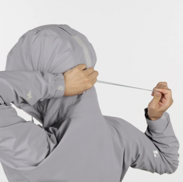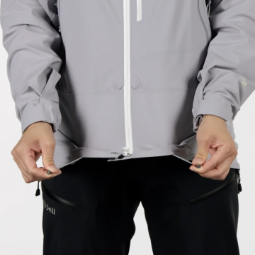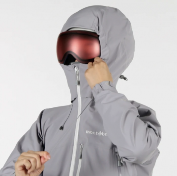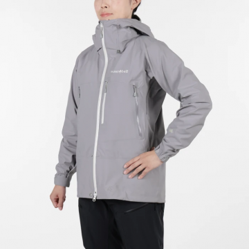 輕巧SUPER DRY-TEC®女裝攀山外套。使用防水透氣SUPER DRY-TEC®三夾布及Anti-Glisse雪地抗滑布料所製。彈性SUPER DRY-TEC®配合柔韌的40D尼龍面布,靈活性更強;且僅重441g。衣領兩側設透氣坑道,可防水蒸氣凝結於雪鏡。設靈活式三向調校頭罩。全立體式剪裁配合立體肩膀及手肘設計,動作更靈活。後背加長2cm增大禦寒範圍。腋下設透氣拉鍊開口。全衣採用抗水拉鍊。