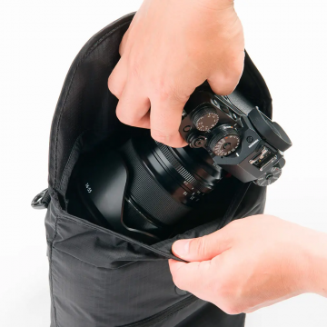 輕巧相機肩袋。全袋設軟墊及黏扣分隔,方便組織不同體積的攝影器材。可放於其他袋內作內袋使用。材料:70D防撕尼龍重量:218g
